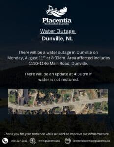 Water Outage 1110-1146 Main Road, Dunville